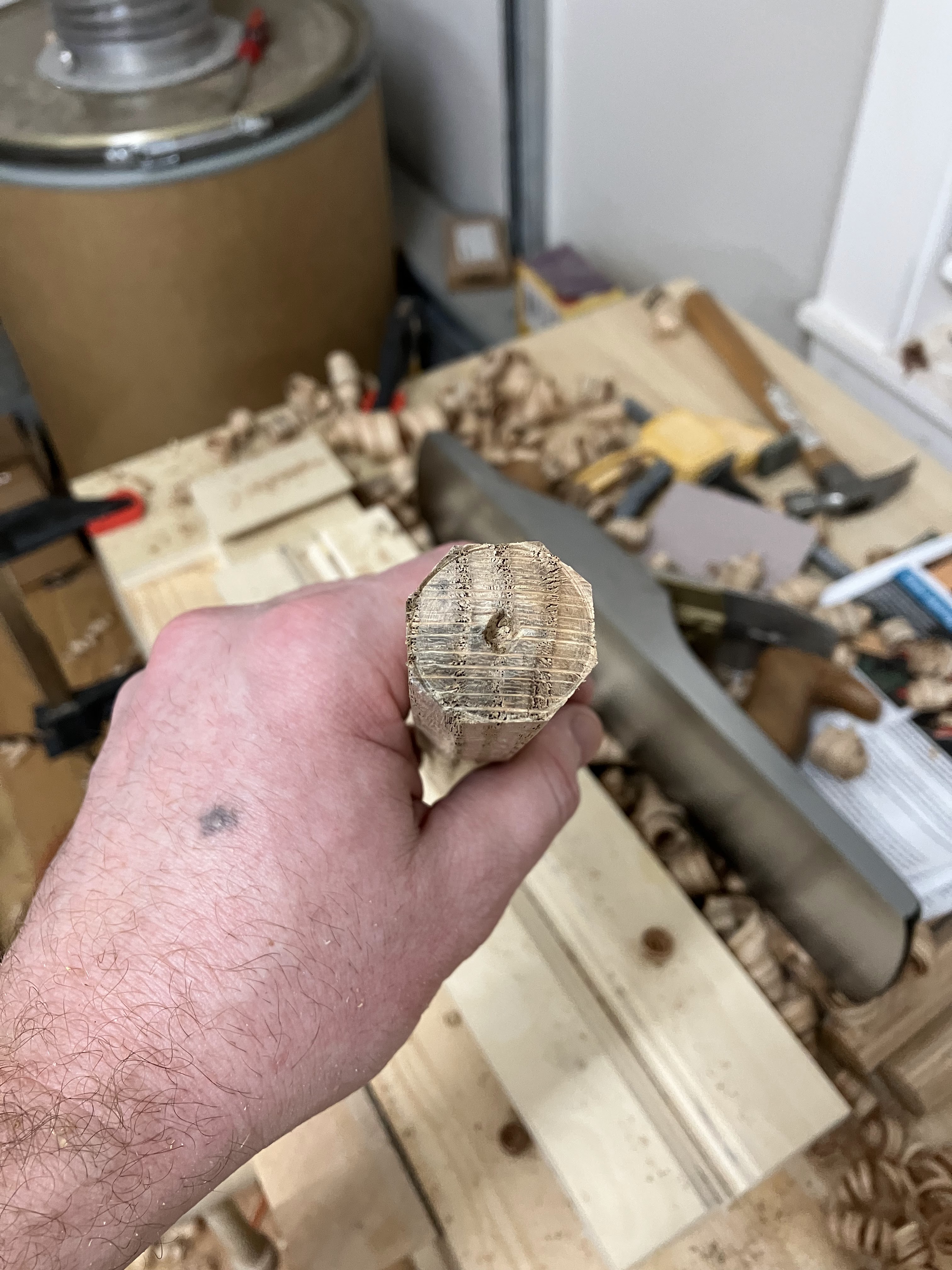 The hickory wedges worked like a dream. I hammered away and none of them seemed remotely close to snapping. Unless I need to use another species for a decorative element, I’m not sure why I would use anything else.